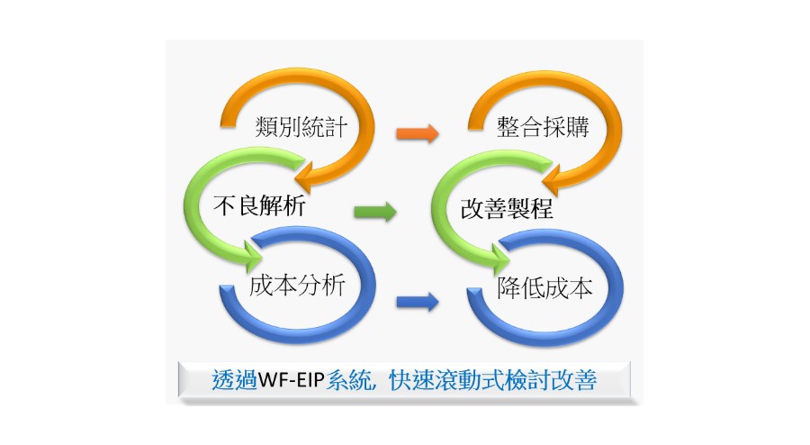 1. 跨部門垂直整合. 每年反覆收集資料、確認資料、提出改善.